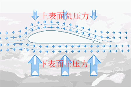 负压力是指绝对压力低于大气压力时的表压力,又称疏空压力。显然机翼上下表面都是受到的负压力。此题考我们机翼产生升力时受力的细节分析。如上图为机翼剖面在空气中的受力情况,机翼内部的空气为静态气体,由“伯努利定律”得知,机翼内部的空气压强是最大的,方向指向机翼壁,如图得知:机翼的上表面受的压力最大。可以想象为机翼上下各有一个“大的吸尘器”在吸机翼,只不过上面的吸尘器吸力大于下面的。