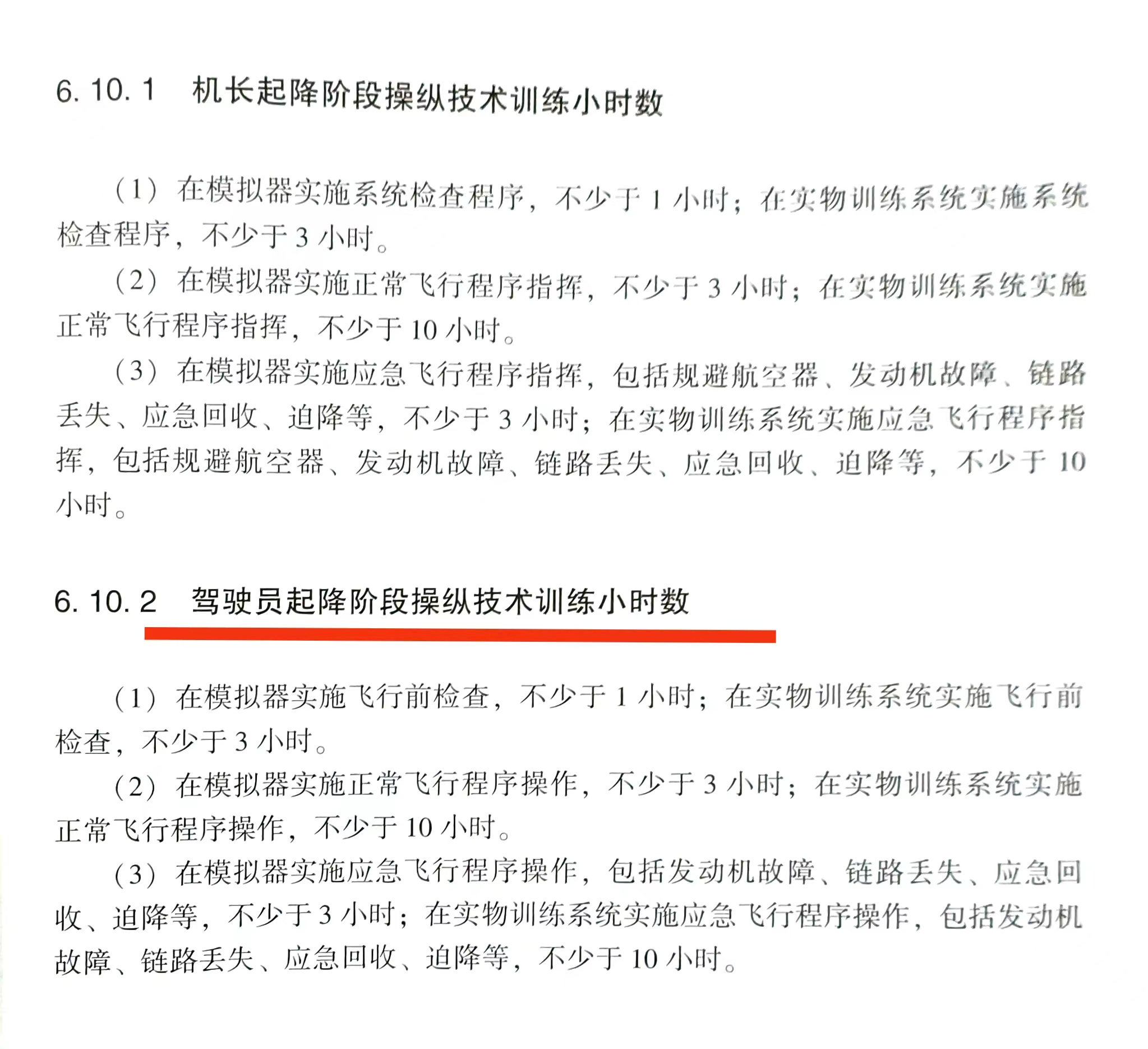 实物训练系统实施正常飞行程序操作,不少于10小时