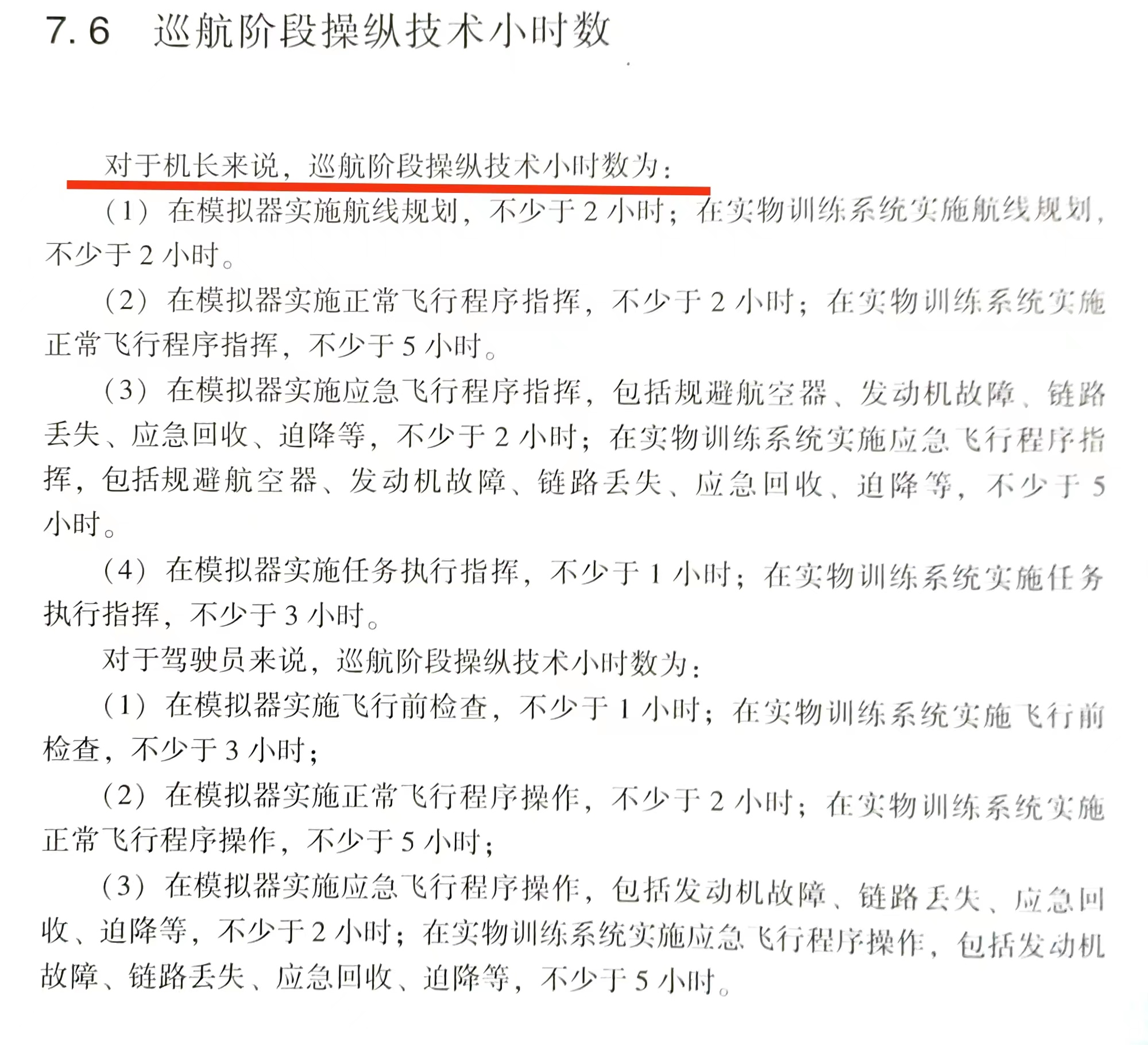实物训练系统实施正常飞行程序操作,不少于5小时