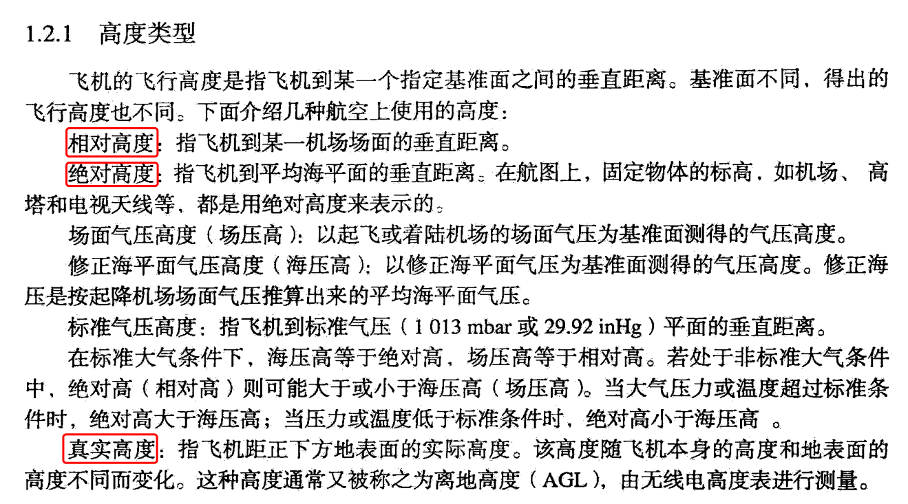 真实高度 - 是指飞机目前位置相对飞机正下方地面或障碍物的垂直距离。