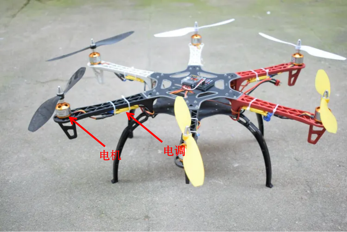 一个电机需要一个电子调速器来调整电机的转速。所以一个轴上一般是一个电机一个电调。