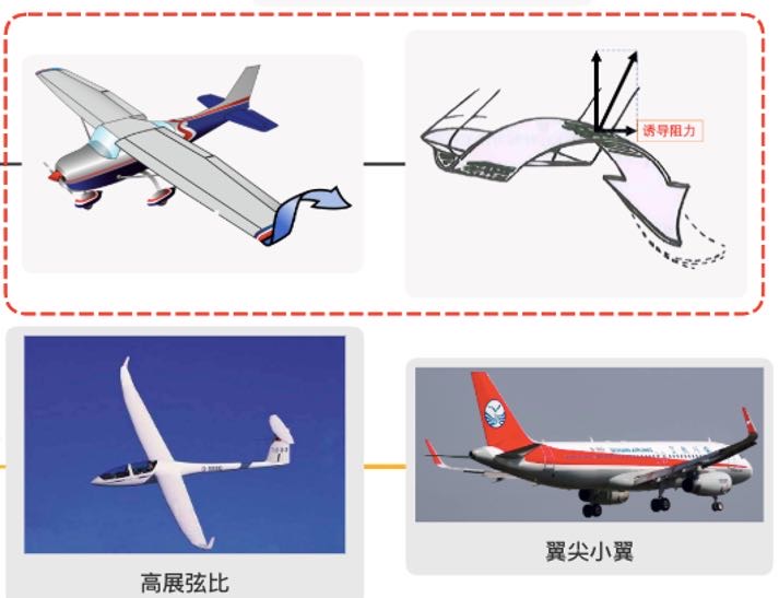 飞机安装的机翼翼展越长,翼弦越短,诱导阻力越小