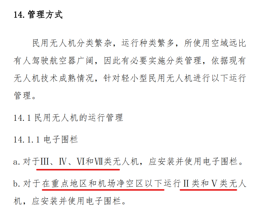 Ⅲ、Ⅳ、Ⅵ、Ⅶ类无人机及重点地区和机场净空区以下运行Ⅱ、Ⅴ类无人机