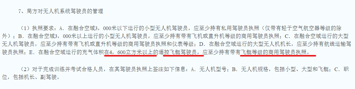 (参见《民用无人驾驶航空器系统驾驶员管理暂行规定》第7点(1))