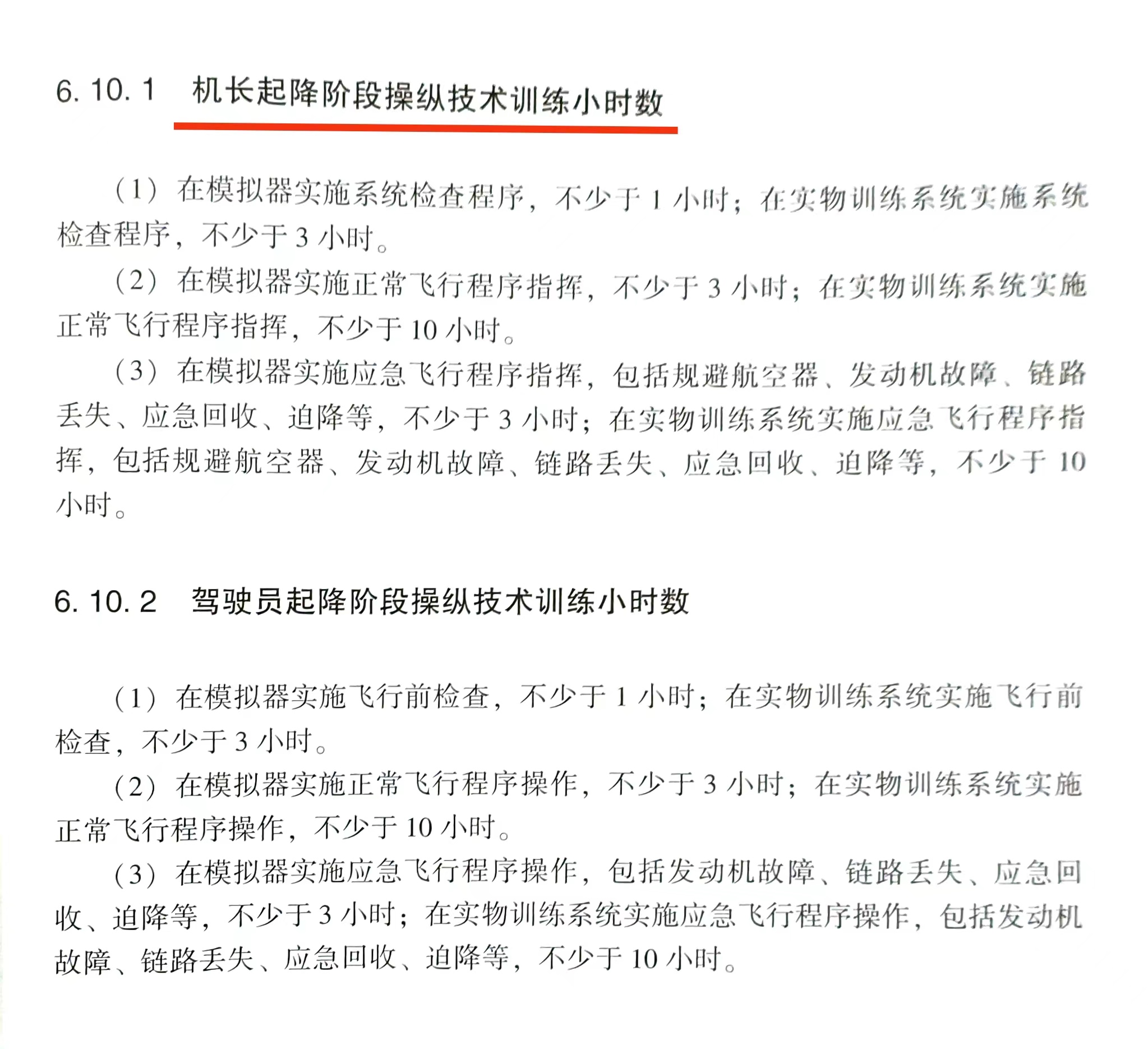 实物训练系统实施正常飞行程序操作,不少于10小时